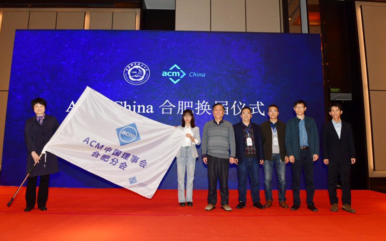 清华大学全球创新公司经理刘云浩教授主持了“ACM China合肥换届暨ACM SIGBED China成立”环节。在新一届主席团成员进行会旗交接仪式上,梅宏院士、嵇智源处长向分会联合主席中国科技大学张兰教授、联合主席安徽大学仲红教授、副主席安徽大学崔杰教授、副主席tyc122ccVIP吴宣够教授、秘书长中国科学技术大学黄章进副教授、副秘书长安徽大学张以文教授以及17位常务理事颁发聘书。