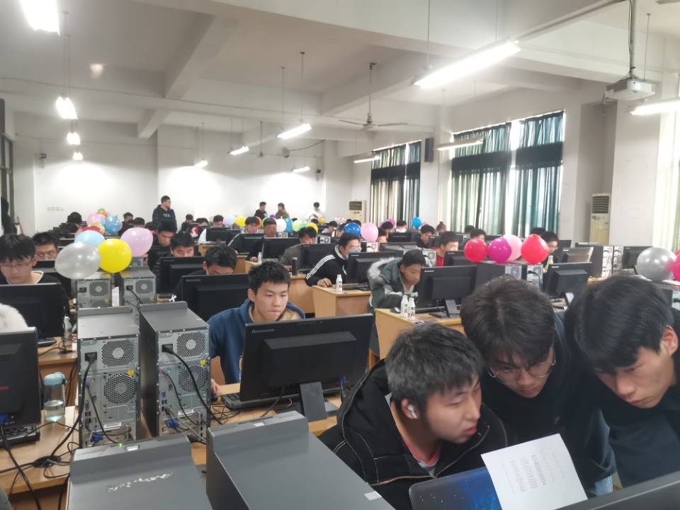12月5日下午两点三十分,60余名考生端坐考场,本次比赛初场正式开始。考场上格外肃静,只听见哒哒的键盘敲击声。十余名监考志愿者来回监督着,为考生答疑解惑,并不停为通过赛题的考生送上象征着解题数量的气球。整个赛场只见多彩的气球愈加填满视线。下午六点三十分,考试准时结束,不少同学都取得了不错的成绩。