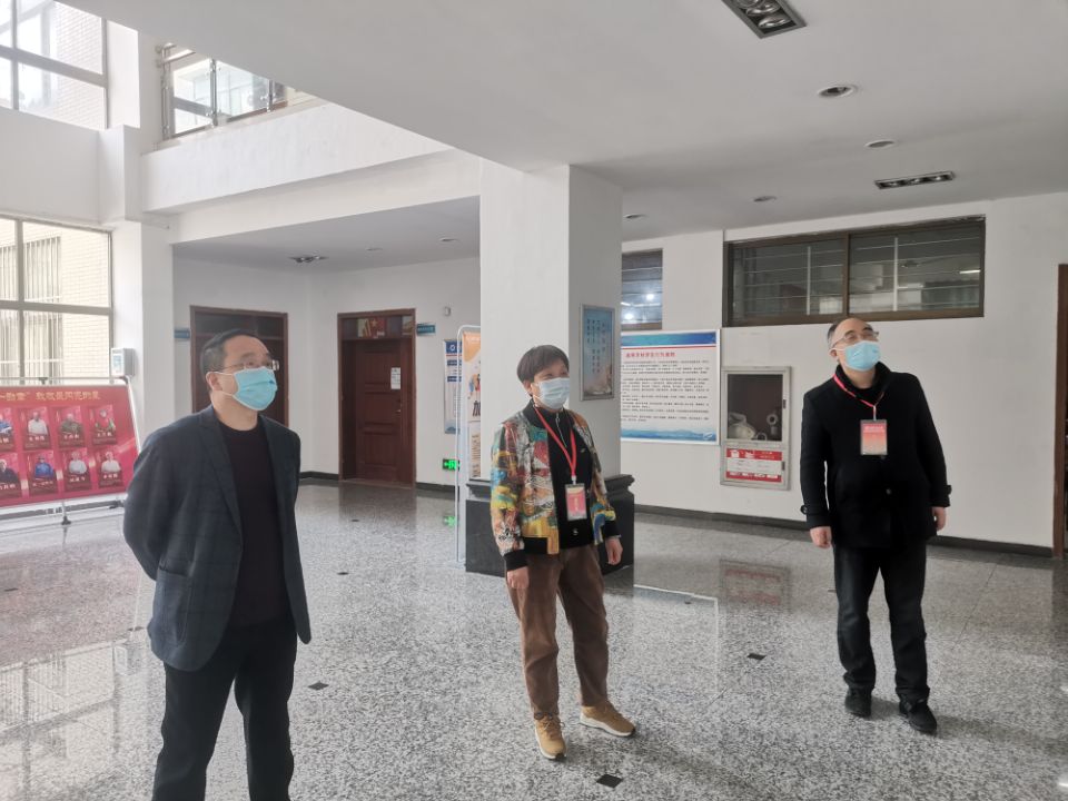 校领导一行认真查看了疫情防控设施和网络复试现场,听取了公司负责人关于研究生网络复试工作的情况汇报。