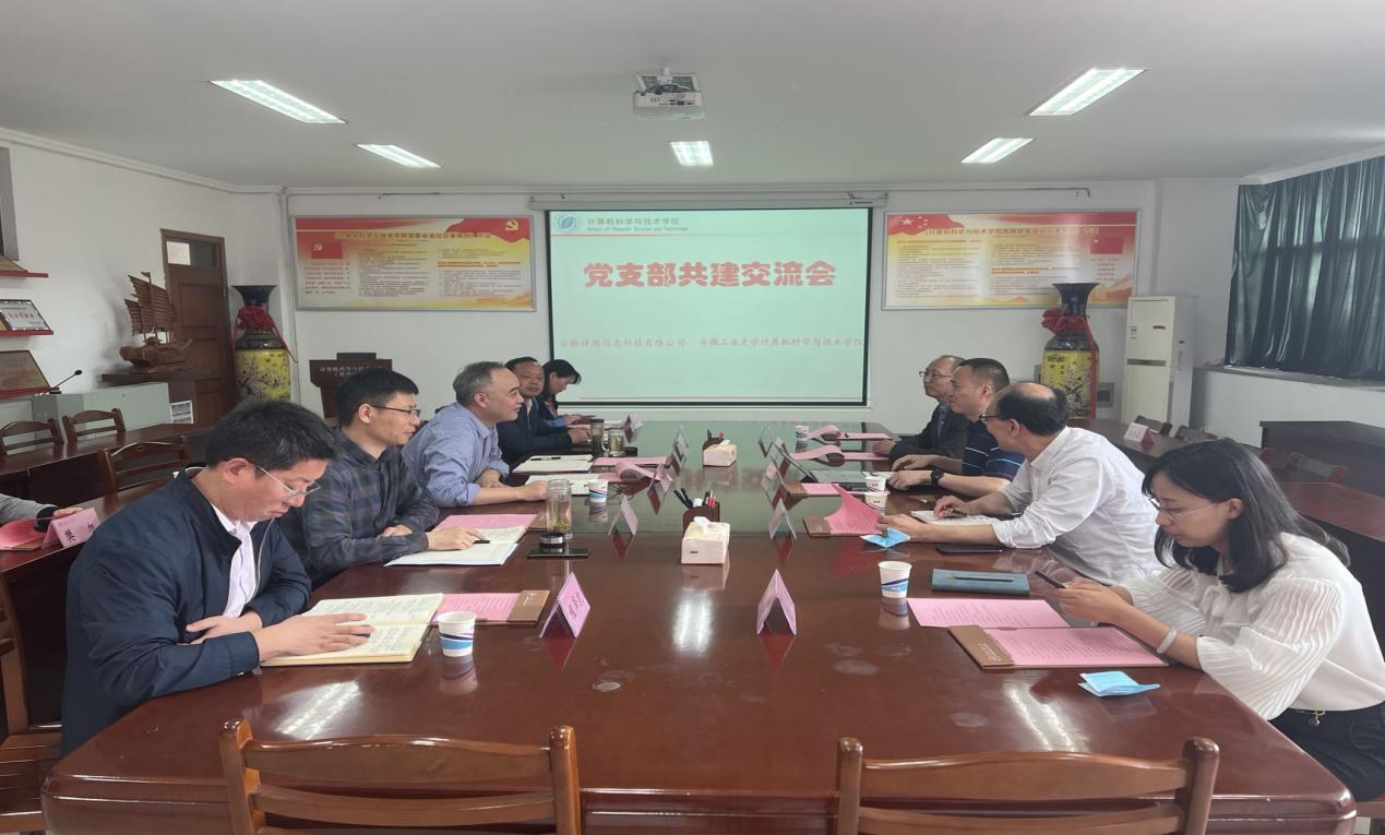 5月20日上午,飞马智科信息技术股份有限公司副总经理何诗兴、安徽祥盾信息科技有限公司总经理张多福一行5人来公司参加“产学研合作暨员工实习实训基地”的签约挂牌和党建交流活动,公司领导班子成员、软件工程系和省工业互联网智能应用与安全工程实验室相关人员参加会议,会议由公司党委副书记、副经理、纪委书记韩军书主持。