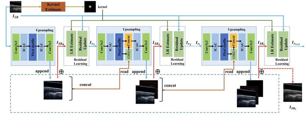 对于超声临床诊断而言,超声影像超分辨(ultrasound image super-resolution)可以提高超声成像质量,从而提高疾病诊断的准确性。但由于传感设备和传输介质的差异,实际场景中超声成像其退化模糊过程是未知且不可控的。为了解决未知退化场景超声医学影像准确超分辨的难题,团队提出了一种有效的基于退化模糊自估计且结合渐进残差学习和记忆提升机制的超声影像盲超分方法,初步实现了真实场景超声影像准确超分辨。相关研究成果发表在人工智能、计算机医学信息交叉领域一区TOP期刊《IEEE Journal of Biomedical and Health Informatics》(IF: 7.7)。公司为论文第一完成单位,tyc122ccVIP刘恒教授、硕士生刘建勇分别为论文第一、第二作者。