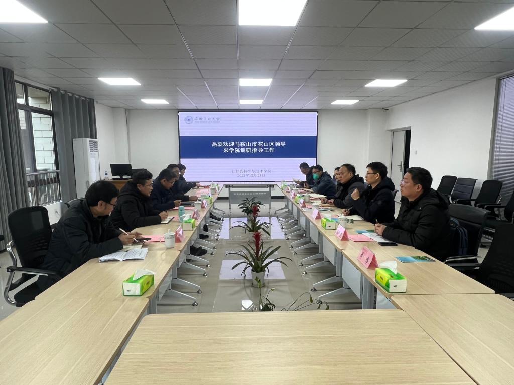 12月21日下午,马鞍山市花山区委书记张卫国,区委常委、组织部长彭冬,区委常委谢亚新,马鞍山软件园管委会赵伟等一行来公司调研交流,公司领导班子成员和科研团队负责人参加会议,会议由公司党委书记韩军书主持。