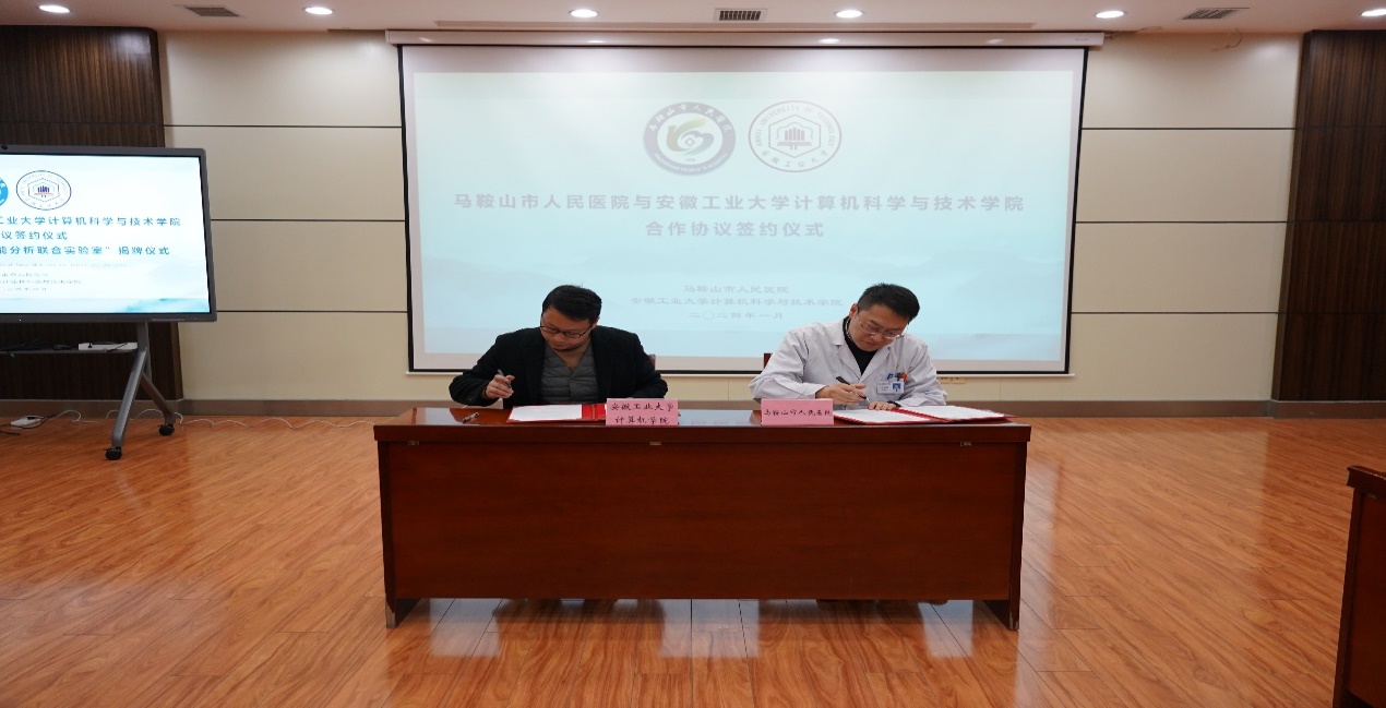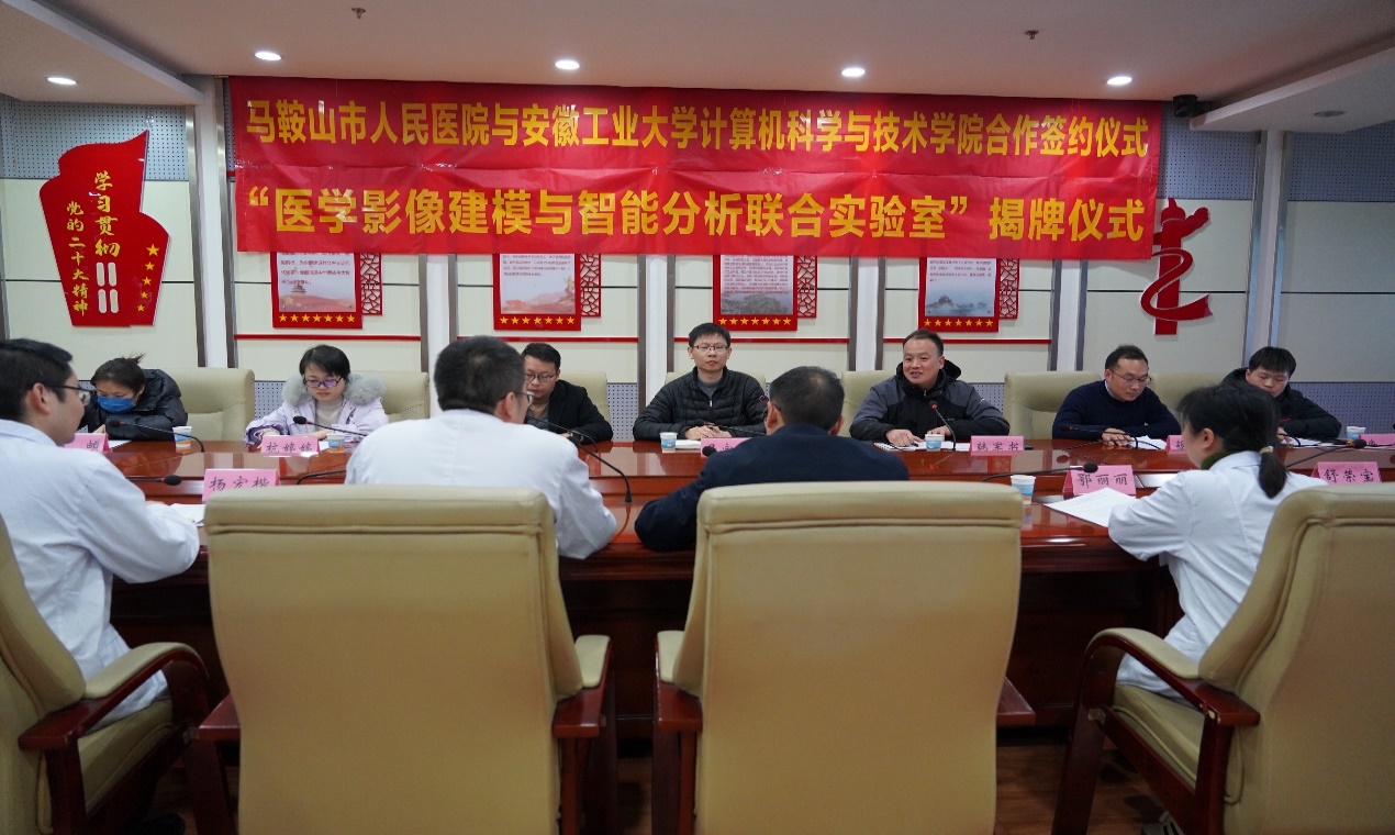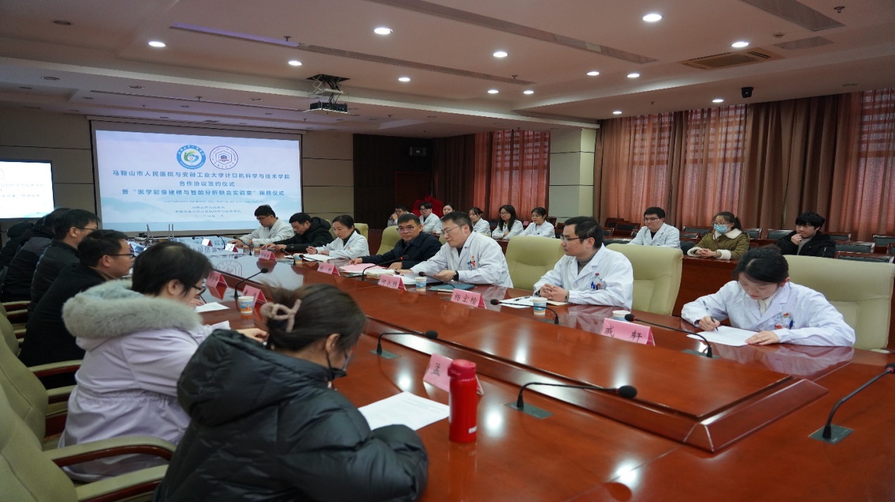 1月2日,马鞍山市人民医院与公司合作协议签约仪式暨“医学影像建模与智能分析联合实验室”揭牌仪式在人民医院门诊楼会议室举行。人民医公司党委书记程根,党委委员、副经理(主持工作)何永胜,科教科科长鄂丽丽,影像科副主任(主持工作)杨宏楷,影像科副主任舒荣宝,影像科诊断医师戚轩、顾潇磊,tyc122ccVIP科研处处长(兼公司党委副书记、经理)吴宣够,公司党委书记韩军书,副经理黄俊,软件工程系主任薛伟,软件工程系副主任杭婷婷,人工智能系教师唐振、孟頔等出席了仪式。何永胜主持了签约仪式。