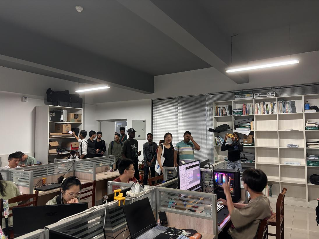 座谈会后,同学们在专业负责人阮越、孟頔老师的带领下,参观了公司的科研平台和科研实验室。在参观过程中,职工们对实验室的设备和研究方向表现出浓厚的兴趣,增进了他们从事科研工作的信心。