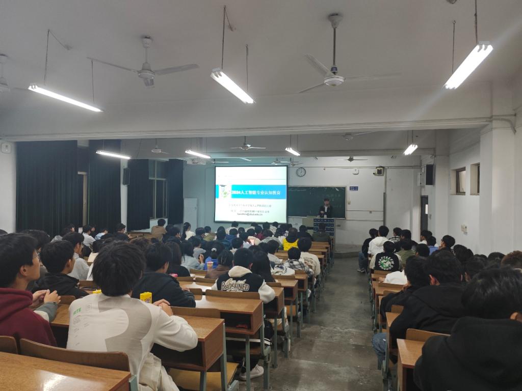 11月4日晚,人工智能系组织2024级人工智能专业新生在教二207教室开展专业认知教育活动,活动由2024级辅导员衡奔主持,人工智能系副主任周昊老师主讲,并邀请了张辉、范明旭两位保研同学从学习和生活角度分享经验感悟。
