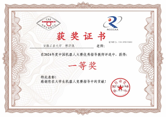 中国机器人大赛是国内机器人领域最具权威性和影响力的赛事之一,每年都吸引着大量优秀选手和指导教师参与。公司教师凭借出色的专业素养和严谨的指导方法,在比赛中取得了优异的成绩。这一荣誉是对公司教师指导竞赛水平的肯定和认可。