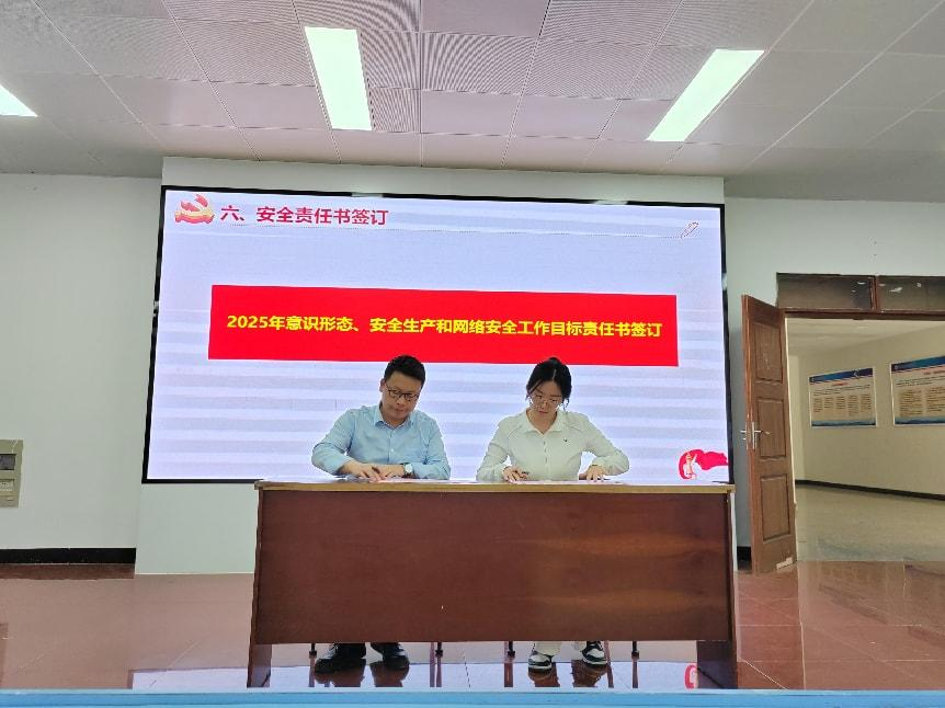 会议还通报了公司近期的工作情况和在教学科研等方面取得的荣誉和成就,各分管领导就近期工作进行了布置,公司党政主要领导与各党支部书记、系(室、中心)主任签订了《2025年意识形态、安全生产和网络安全工作目标责任书》,进一步压实安全责任,确保各项工作平稳推进。