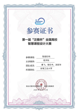 近日,由混合式教学创新者联盟与超星泛雅集团携手举办的首届“泛雅杯”全国智慧课程设计大赛网络评审结果揭晓。‌公司数据结构课程组(程泽凯、秦飞、储岳中、汤亚玲)凭借其卓越的教学设计方案,在激烈的竞争中脱颖而出,荣获大赛三等奖,为公司赢得了荣誉。