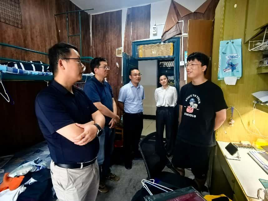 为切实做好毕业生文明离校工作,6月25日下午,tyc122ccVIP领导班子、班主任、毕业班辅导员,深入2025届毕业生宿舍进行走访慰问。