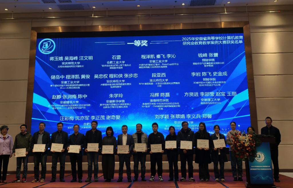 11月8日,2025年安徽省高校计算机教育大会在淮北市召开,公司副经理程泽凯、薛伟受邀率队参加会议。大会由安徽省高校计算机教育研究会、全国高校计算机基础教育研究会教育信息化专委会主办,淮北师范大学承办,以“智能时代计算机教育的守正与创新”为主题,吸引了来自省内外高校和企业的300余名代表参会。会上对本年度优秀教学案例、优秀硕士论文、专业建设教改项目进行颁奖。