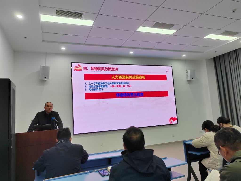 夏玉钦首先带领教职工进行政治理论学习,学习传达了党的二十届四中全会精神,对“十五五”时期经济社会发展的指导方针、主要目标、遵循原则和重要部署进行了详细解读,对公司近期的重要会议精神和重要文件进行了传达,就公司近期的主要活动、获得的荣誉进行了通报点评,并结合具体案例进行了师德师风警示教育。
