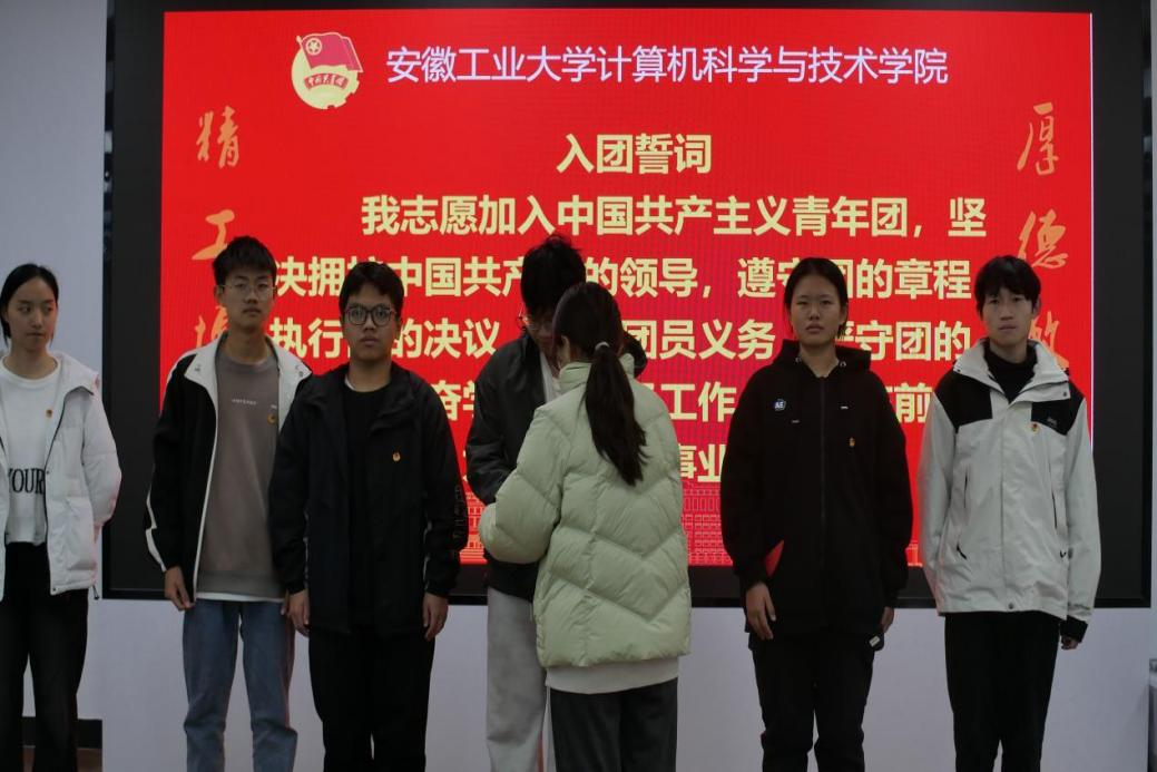 入团仪式在激昂的国歌声中拉开帷幕。夏成龙宣读了新发展团员名单,本次共有36名同学光荣加入中国共产主义青年团。丁方诚为新团员代表颁发团员证,王宇驰为新团员代表佩戴团徽。在新团员方灿的带领下,全体新团员庄严地面向团旗宣誓,与会的老团员们重温了入团誓词。优秀团员代表蒋元龙号召新老共青团员要深入学习贯彻习近平总书记关于青年工作的重要思想,用奋斗和担当擦亮青春底色。新团员代表胡天姣表示将以团员标准严格要求自己,坚定理想信念,用实际行动书写青春篇章。