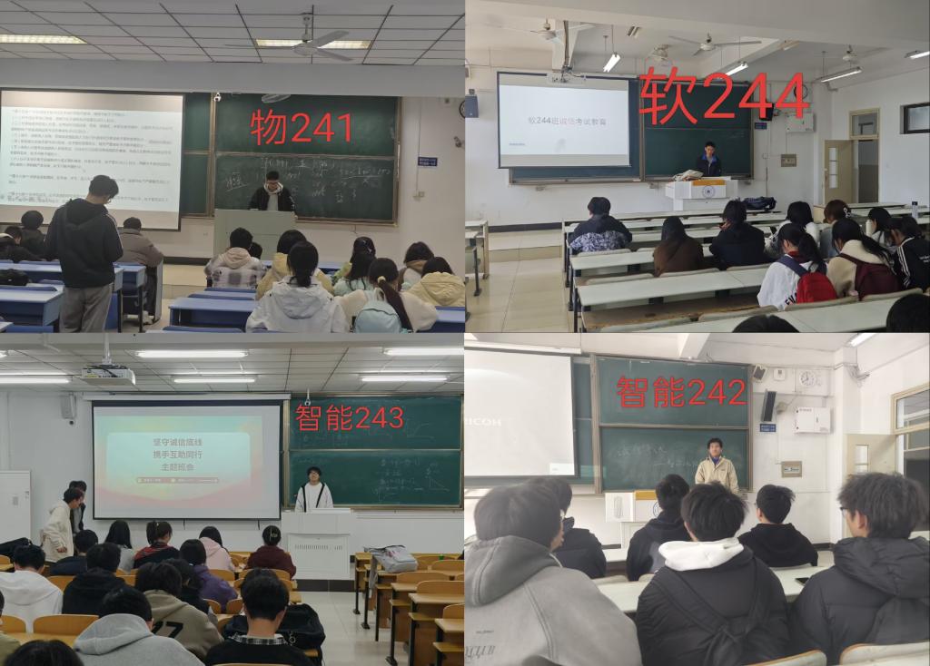 班会上,各班班长通过通报近期班级上课出勤、课堂抬头率、师生互动等数据情况,深入剖析各班级学风建设中存在的突出问题。部分班级详细解读《员工手册》中诚信考试相关规定,结合员工考试违纪处分案例,强调违纪作弊的严重后果,要求全体同学严守考试纪律,以真实水平展现学习成果。本次活动中,班主任老师均积极参与。软241班班主任刘辉老师结合专业学习特点开展针对性教育引导,鼓励员工确立学业目标,抓住期末复习关键期夯实专业知识,实现从“要我学”到“我要学”的转变,营造笃学向上的学习风气。活动后,部分班级趁热打铁,有针对性地成立了“学习小组”“自习小分队”等互助小组,持续营造互助共进的学习氛围。