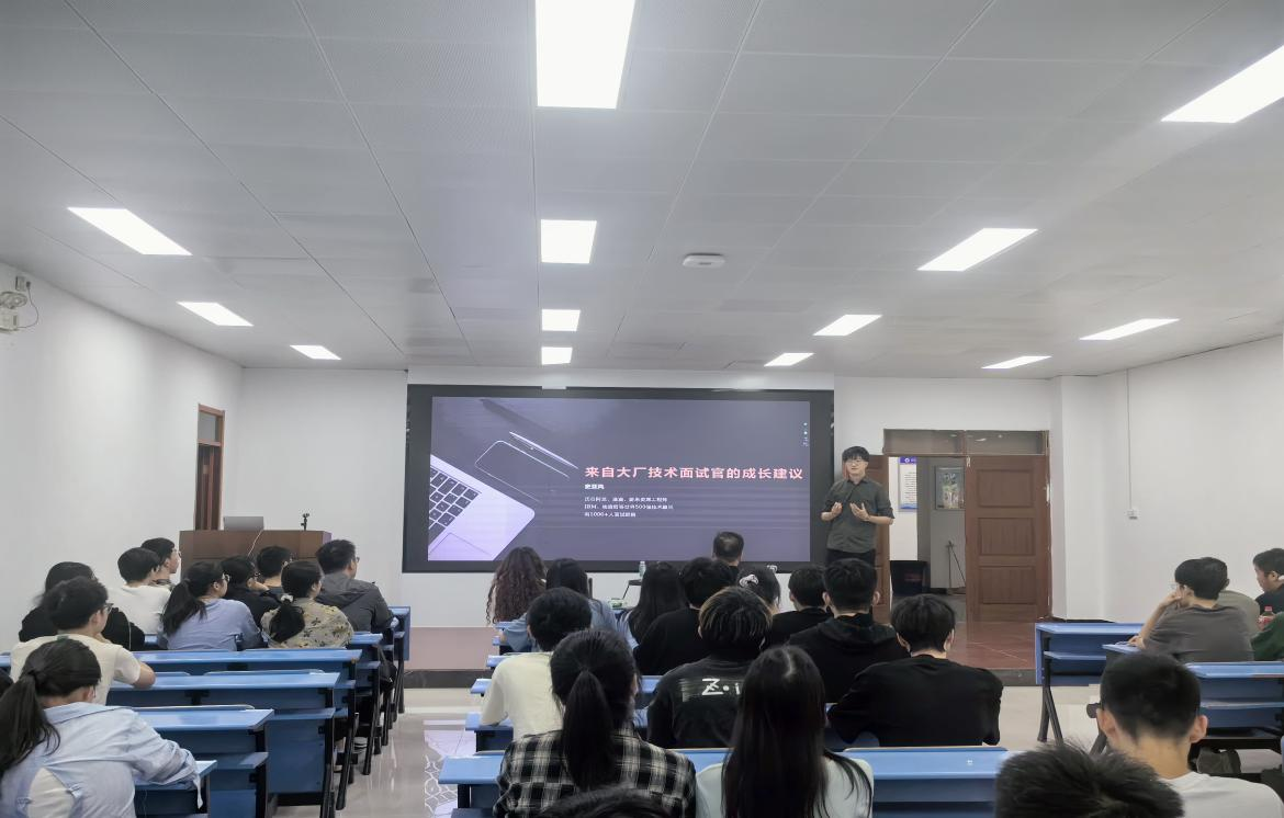 史亚风结合自己的在校经历,向学弟学妹们分享了他在大学期间提升专业技能和培养综合素质的经验,同时提出了宝贵的建议。他在发言中特别强调扎实的基础知识、不断创新的思维以及良好的团队协作能力的重要性。在求职能力实训营环节,他结合自身丰富的职场经历和面试经验,深入剖析了当前计算机行业的发展趋势和人才需求特点,详细介绍了大厂技术面试的流程和要求,并针对性地提出了应对策略。与会同学们争相发言提问,表达了在职业规划、面试技巧等方面的困惑,史亚风则一一解答。会后,韩军书向史亚风员工颁发了“tyc122ccVIP就业创业领航导师”聘书。