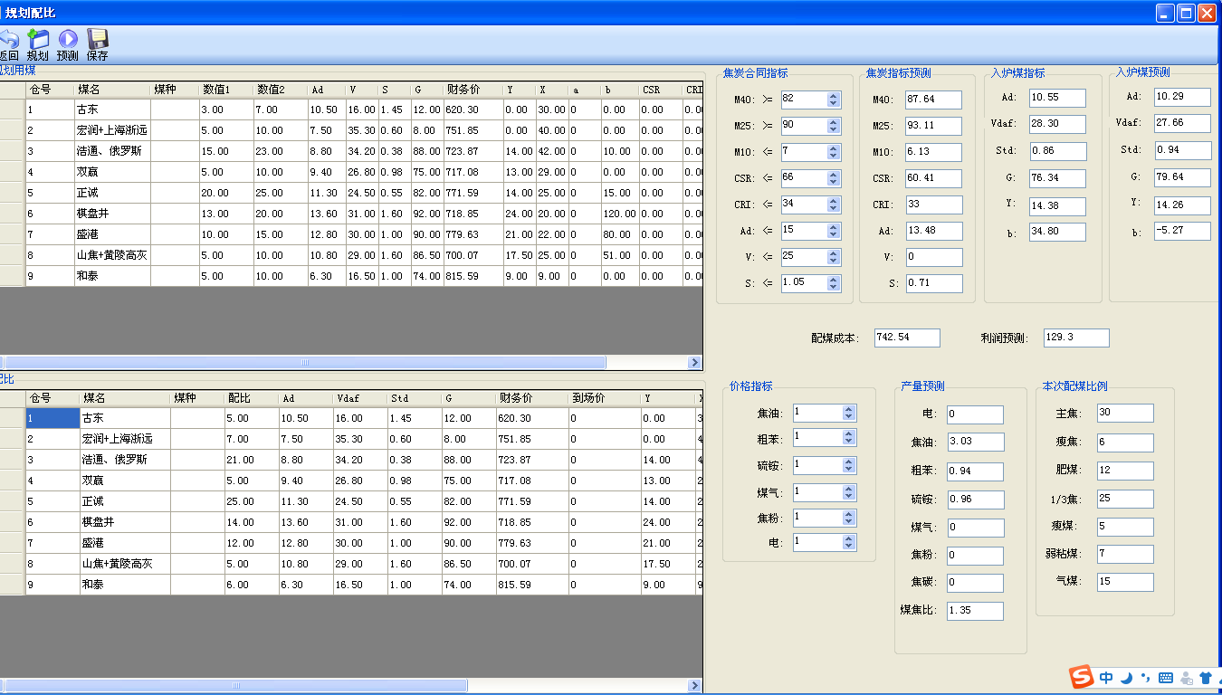 企业横向课题,炼焦配煤结构优化与焦炭质量预测控制系统研发及应用